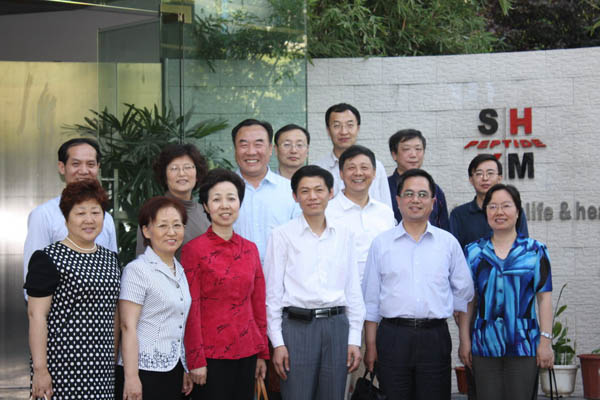 普陀區科委領導向大家介紹參觀團的人大代表及相關部門領導,公司周逸明總經理向市人大代表簡要匯報了企業近幾年的發展情況,他說上海蘇豪逸明制藥有限公司近幾年,在有關領導的關心與幫助下,企業規模、效益、上繳稅金年年翻番,穩居國內多肽原料藥行業龍頭地位。