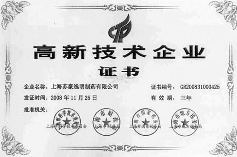我(wo)司近日(ri)被(bei)上(shang)海市(shi)科學技(ji)(ji)術(shu)委員會、上(shang)海市(shi)財政局(ju)(ju)、上(shang)海市(shi)國(guo)(guo)家稅(shui)務局(ju)(ju)、上(shang)海市(shi)地方(fang)稅(shui)務局(ju)(ju)聯合評(ping)為“國(guo)(guo)家級(ji)高新技(ji)(ji)術(shu)企(qi)業”,以此表彰(zhang)我(wo)司在新藥(yao)研發、高新技(ji)(ji)術(shu)應(ying)用(yong)方(fang)面取得的(de)成績。我(wo)司以科技(ji)(ji)進步為先導(dao),加大高新技(ji)(ji)術(shu)投入力(li)度,積極推進科技(ji)(ji)成果(guo)產業化,已經(jing)連續(xu)四年獲(huo)得“國(guo)(guo)家級(ji)高新技(ji)(ji)術(shu)企(qi)業”稱(cheng)號(hao)。