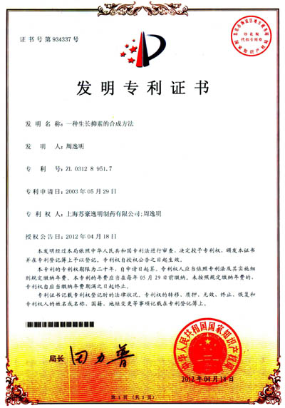 熱烈祝賀公司生長抑素獲得國家發明專利